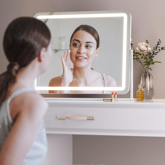 Hasipu Vanity Mirror with Lights, 22" x 18" LED Makeup Mirror, Light up Mirror with Smart Touch 3 Colors Dimmable, Brightness Adjustment, 360° Rotation (White)