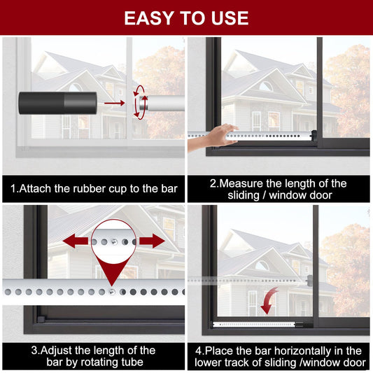 AceMining Sliding Door Security Bar,Heavy Duty Sliding Patio Door Lock Bar, 20-50inch Adjustable Multi-use Window Security Bars, Sliding Door Stopper,White,1Pack