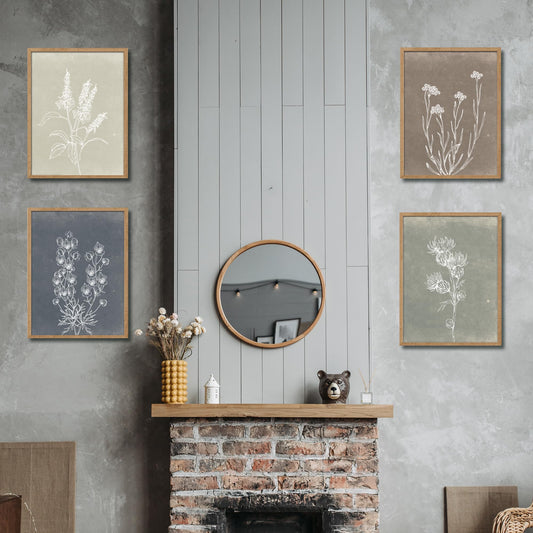 Heiple Framed Boho Wall Art Set of 4 Wooden Wall Art for Rustic Vintage Farmhouse Home Living Room Bedroom Bathroom Kitchen Wall Decor (Brown, 11"x14")