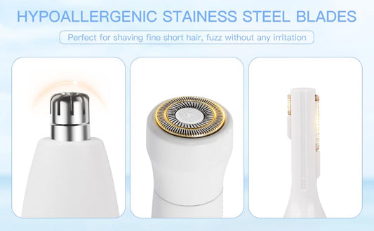 HEBECA Nose Hair Trimmer for Women and Men, 3-in-1 Electric Facial Hair Removal Rechargeable Portble Waterproof Face Shaver Razor for Nose Ear Eyebrow Peach-Fuzz Lips Chin FT3001