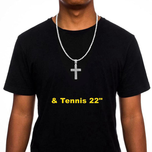 HH BLING EMPIRE Gold/Silver Diamond Cross Pendant Necklace for Men Women-Iced Out Chains with Cross Necklace 24 Inch (Cross F-Silver, & Tennis Chain)