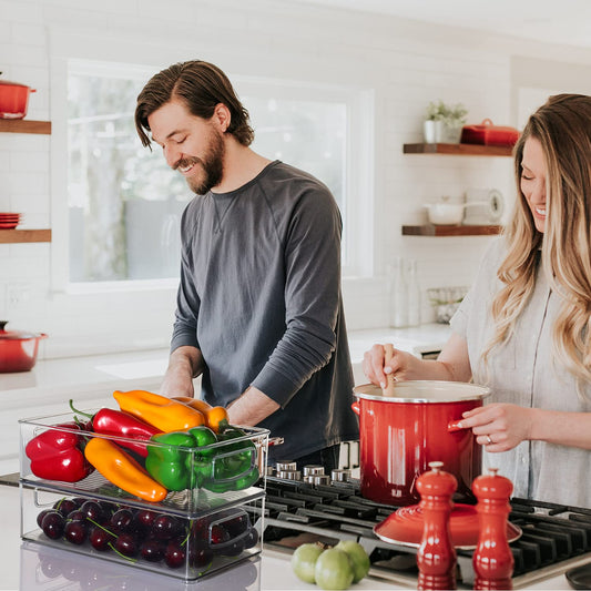 Heyuzb Set of 8 Clear Plastic Storage Bins, 4 Large and 4 Small Stackable Food Storage Organizer Bins for Pantry Organization and Kitchen Cabinet, Refrigerator Fridge Organizers and Storage