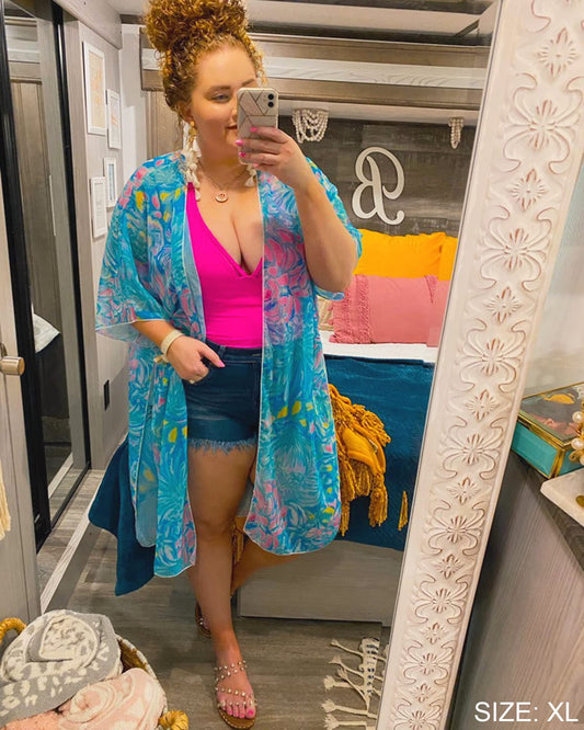Hibluco Women's Long Floral Kimono Printed Cardigan Sheer Swimsuit Cover Ups