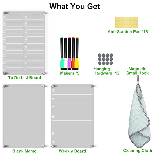 Acrylic Magnetic Dry Erase Board for Fridge 3 Pcs, Clear Fridge Whiteboard to Do List White Board for Refrigerator Weekly Meal Planner Menu Board for Kitchen Fridge Calendar Magnet