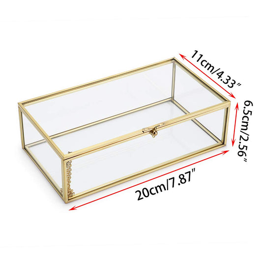 Hipiwe Glass Vintage Jewelry Box - Golden Geometric Jewelry Display Organizer Keepsake Box Case Home Decorative Box for Storage Trinket Ring Earring Chest (Small)