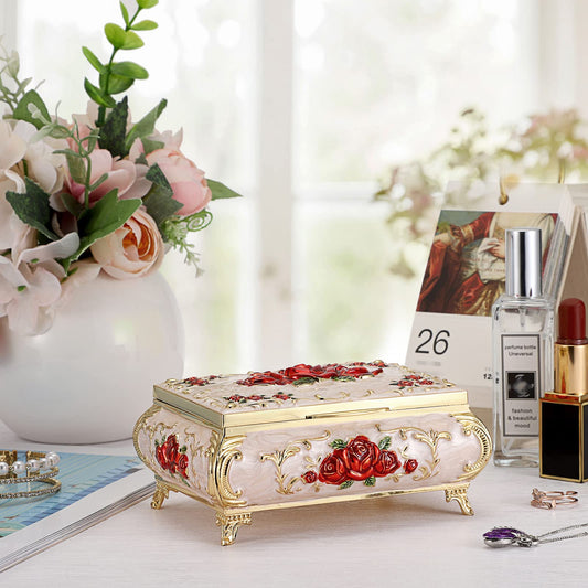 Hipiwe Rose Shape Vintage Jewelry Box - Small Trinket Storage Holder Case Keepsake Organizer Box for Rings Earrings Necklace Treasure, Gift for Women, Large