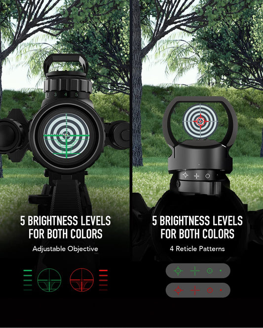 HIRAM 4-16x50 AO Rifle Scope Combo with Green Laser, Reflex Sight, and 5 Brightness Modes Flashlight