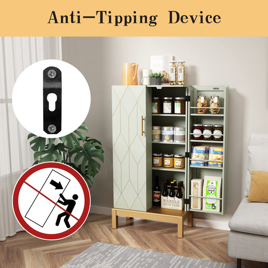 HOLTICO 45'' Kitchen Food Pantry Storage Cabinet with Doors and Adjustable Shelves for Kitchen,Dining Room,Living Room and Garage,Gold Lines and Legs,Green.