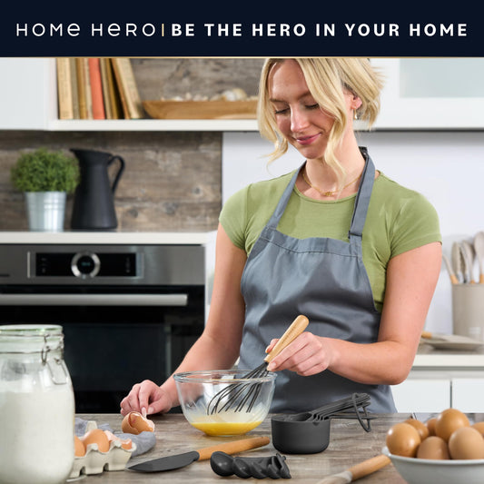 Home Hero 44 Pcs Silicone Kitchen Utensils Set, Non-Stick Silicone Cooking Utensils Set with Spatula, Wooden Handle Spatula, Silicone Kitchen Gadgets Utensil Set (44 Pcs - Black)