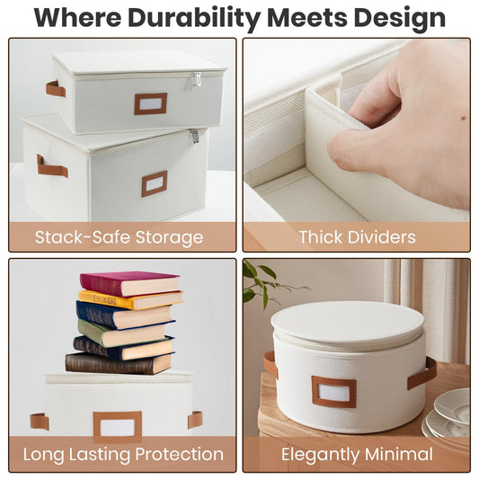 HOMELUX THEORY Champagne Flute Storage Box, Ivory Hard Shell China Storage Containers, Kitchen Storage Bins With Lids, Heavy Duty Moving Box for Glasses & Stemware, Glassware & Wine Glass