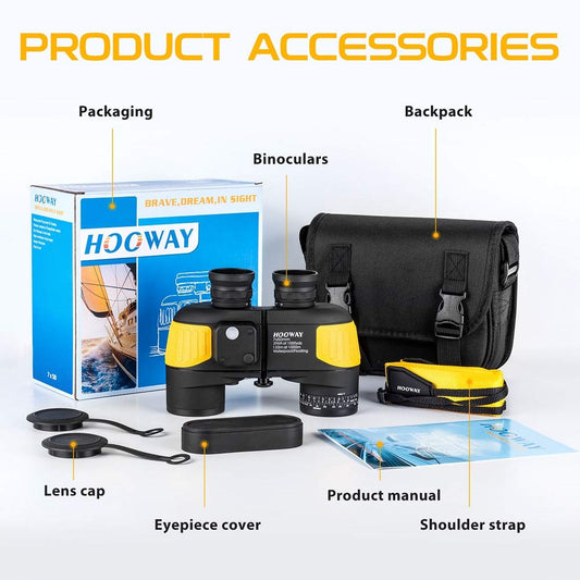 Hooway 7x50 Waterproof Fogproof Military Marine Binoculars w/Internal Rangefinder & Compass for Navigation,Boating,Fishing,and More
