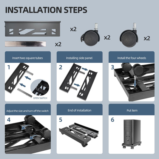 Adjustable Mobile CPU Stand, Ventilated Computer Tower Stand with 4 Caster Wheels Fits Most PC Tower, Under Desk CPU Holder PC Floor Cart Computer Riser for Gamers and Students (Black)