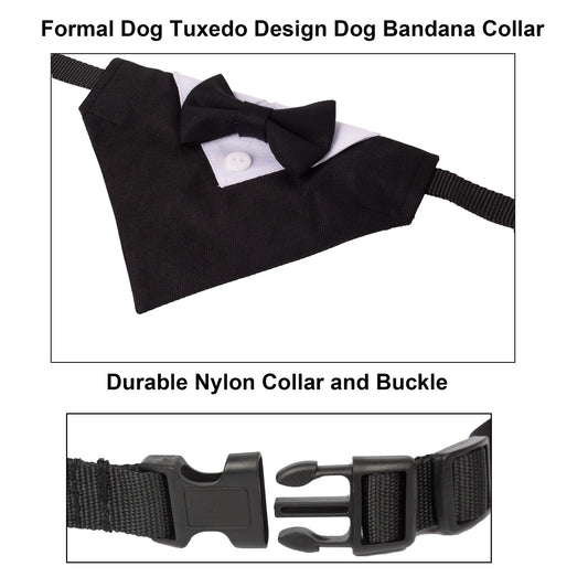 ADOGGYGO Formal Dog Tuxedo, Wedding Dog Collar with Bow Tie, Adjustable Pet Wedding Collar Bandana for Small Medium Large Dogs (Small, Black)