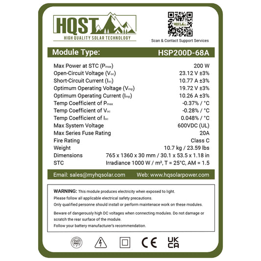 HQST 200 Watt Solar Panel, 9BB Monocrystalline Solar Panels with 25% Efficiency, Grade A+ Cells, IP65 Rating for RV, Camper Van, Trailer, Marine, Home Rooftop, Off Grid