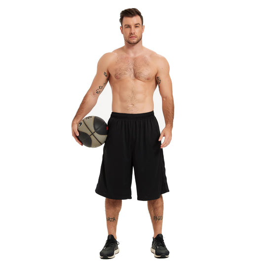 HQUEC Men's 12" Basketball Shorts Long Athletic Workout Gym Mesh Shorts Below Knee Loose-Fit with Pockets Black M