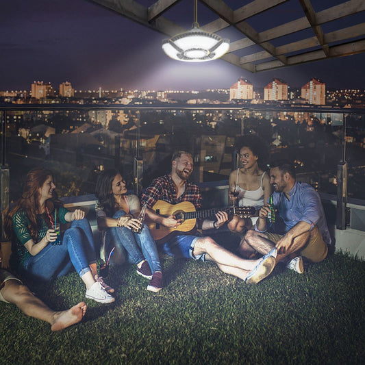 HULPPRE Solar Shed Light-Daytime or Night,4+1 Leaves 136Leds Brighter Solar Light Indoor&Outdoor with Remote,IP65 Barn/Chicken Coop/Workshop/Ceiling/Pendant Lamp for Patio,Garden,Yard,Gazebo