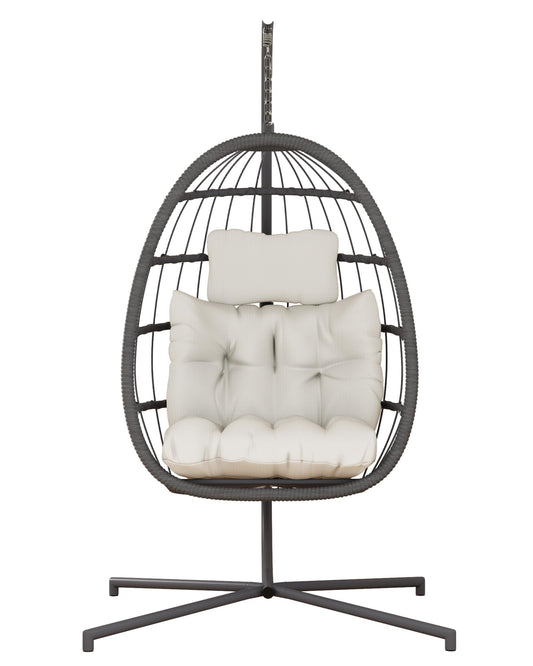 HWB Hanging Egg Chair with Stand, Patio Wicker Hammock Egg Swing Chair with Cushion for Bedroom Garden Indoor Outdoor (Beige)