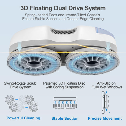 HUTT S7 Window Cleaning Robot, 5500Pa Suction, 3D Floating Chassis, HydroJet Water Spray 80ml Tank, Multiple Safety Systems, SLAM 4.0 Navigation, 8 x Cloths, All-in-One Storage Box