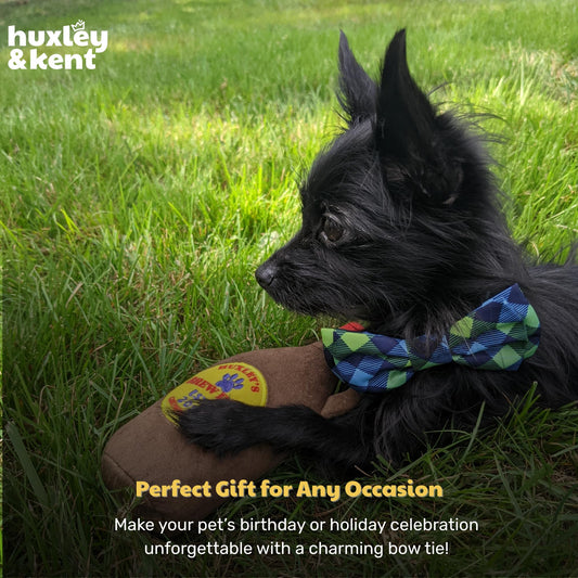 Huxley & Kent Pet Bow Tie for Dogs & Cats - Adjustable Collar Accessory - Cute & Comfortable for Holidays & Celebrations - Navy Check, Large