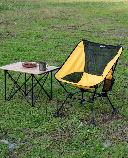iClimb Ultralight Compact Camping Folding Beach Chair with Anti-Sinking Large Feet and Back Support Webbing (Yellow - Square Frame - 2PC)