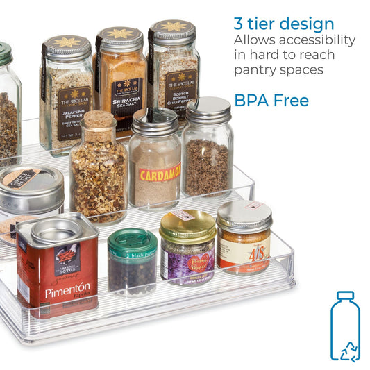 iDesign 3-Tier Spice Rack Organizer for Cabinets, Pantry or Countertop - Clear - Made in USA