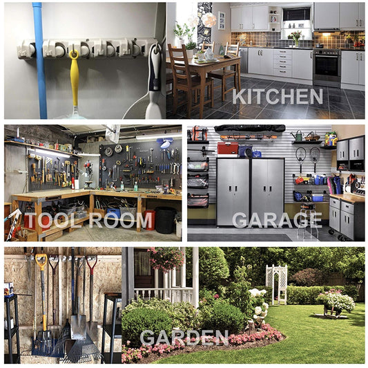 IMILLET 2 Pack Mop and Broom Holder, Wall Mounted Organizer Mop and Broom Storage Tool Rack with 5 Ball Slots and 6 Hooks (Black)