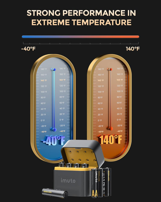imuto Rechargeable aa Batteries with Charger, 3000mWh aa Lithium Batteries 16 Pack, 8 Slot Storage Box Style Lithium Battery Charger, 1.5V 2A Output, 1600+ Cycle Life, 2.5H Fast Charging