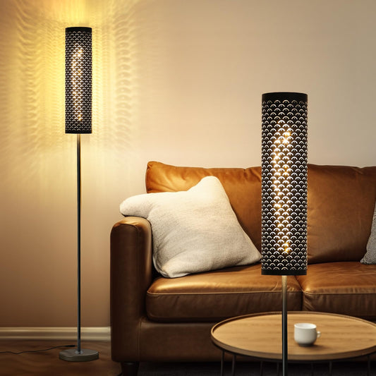 Industrial Modern Floor Lamps for Living Room, Dimmable Standing Tall Lamps Remote Control Custom Color Temperature & Brightness Lamp with Fabric Lampshade, Tall Lamps for Bedroom Office, Black