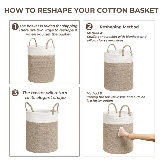 INDRESSME XXXLarge Cotton Rope Basket 21.7" x 21.7" x 13.8" Woven Baby Laundry Blanket Basket Toy Baskets with Handle Storage Comforter Cushions Thread Laundry Hamper Home Decor Living Room