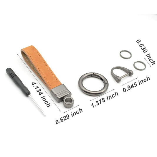 INFIPAR Car Fob Key Chain Genuine Leather Keychains Holder for Men and Women, 360 Degree Rotatable, with Anti-lost D-Ring, Circle Carabiner and Key Rings, Brown