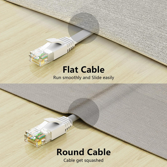 Jadaol Cat 6 Ethernet Cable 50 ft, Outdoor & Indoor 10Gbps Support Cat8 Cat7 Network, Flat RJ45 Internet LAN Computer Patch Cable for Router, Modem, Switch, Gaming Consoles, Streaming Devices, White