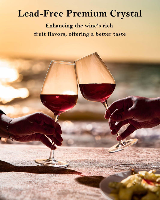 JBHO Crystal Wine Glasses - Hand Blown Red or White Wine Glasses -18 Ounce - Set of 2 - Lead-Free Premium Crystal - Long Stem Wine Glasses - Clear