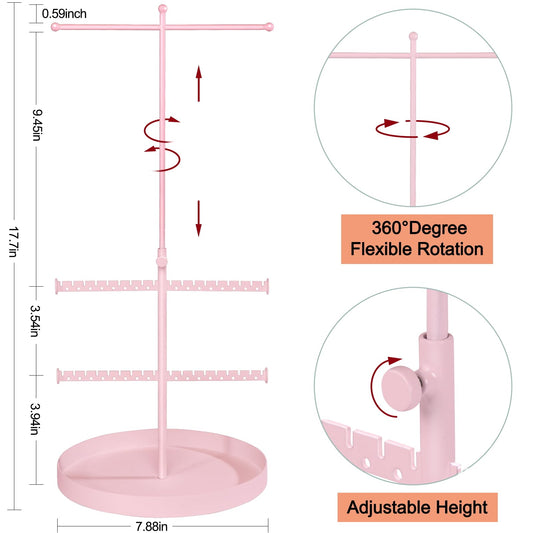Jenseits Jewelry Holder Organizer Stand, 3 Tier Necklace Organizer Earring Holder Tree, Adjustable Height Jewelry Display Towers, Long Necklaces Bracelets Jewelry Storage Rack Gift For Women, Girls