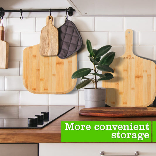 JIAFUEO Pizza Peel 12 inch, Bamboo Pizza Paddle Spatula - Wooden Serving Board, Oven Accessory for Baking Homemade, Wood Cutting Board for Cheese Bread Fruit Vegetables