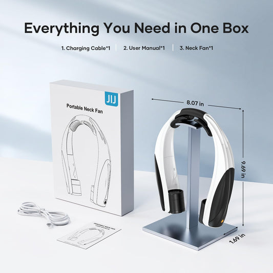 JIJ Neck Fan – Portable Neck Fan Rechargeable with 6 Adjustable Speeds, Neck Cooler with 360° Surround Breeze, Upgraded Long-lasting Wearable Fan for Hot Weather, Travel, Outdoor, Camping, Men & Women