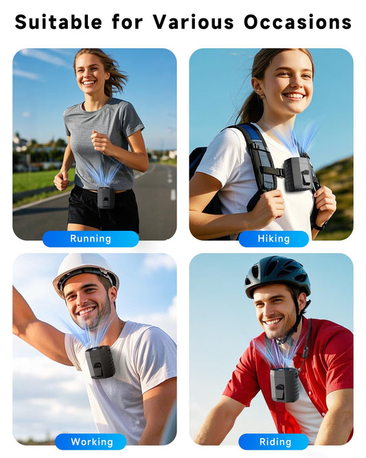 JKBOOM 2025 Smart Portable Rechargeable Fan with LED Light & 25H Runtime, 4-Speed 9200RPM Turbo Cooling Personal Waist Fan, Wearable Neck & Belt Clip for Camping, Outdoor, Hiking - Black