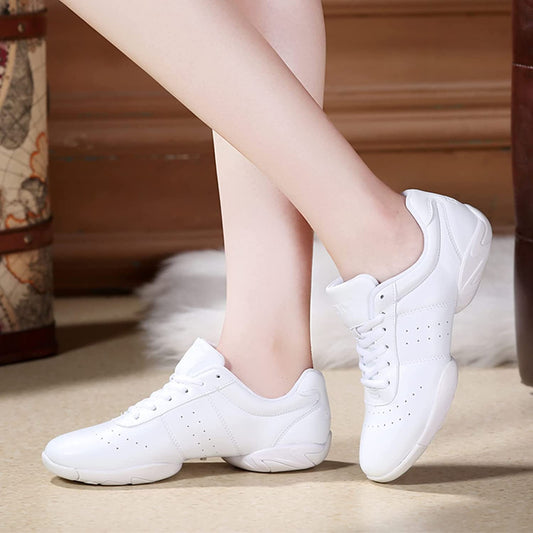 JITUUE Women Cheerleading Dance Shoes Fashion Trainers Sneakers Lace Up Gym Athletic Sport Training Shoes for Girls (White,12 lk28)