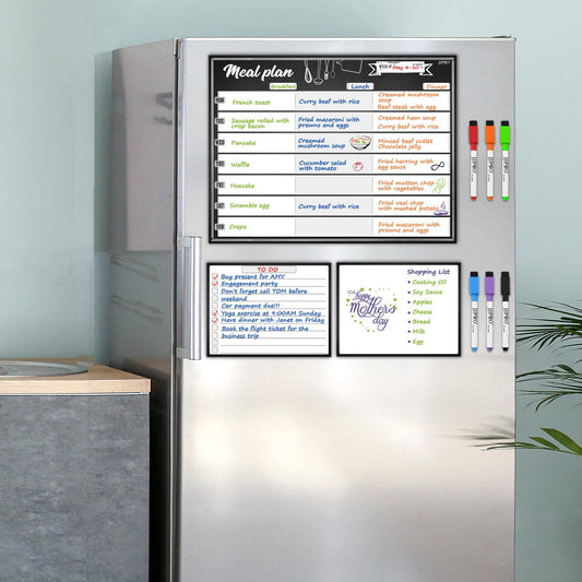 JJPRO Magnetic Dry Erase Meal Planning Whiteboard for Refrigerator-One 14.5x11 Weekly Menu Board and Two Notes Whiteboard for Kitchen Fridge-Refrigerator Organizer with Meal Planner Boards
