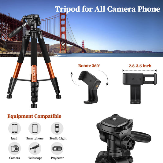 JOILCAN Tripod for Camera, 67" Heavy Duty Camera Tripod, Phone Tripods for Video Recording Photo Vlog, Aluminum Tripods with Holder & Travel Bag for Cameras DSLR iPhone Projector Laser