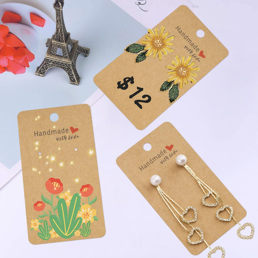 joycraft 200 Pack Kraft Earring Cards, 2"x3.5" Earring Display Holder Cards,Handmade with Love Hanging Tags,Blank Brown Earring Tags for Selling,Hanging Earring,Jewelry,DIY Crafts,Retail