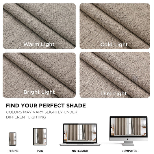 Joydeco 100% Blackout Curtains for Bedroom - Natural Linen Curtains 84 Inch Long, Thermal Insulated 2 Panels Linen Light Blocking Drapes, Rod Pocket & Back Tabs, Darkening Privacy for Living Room