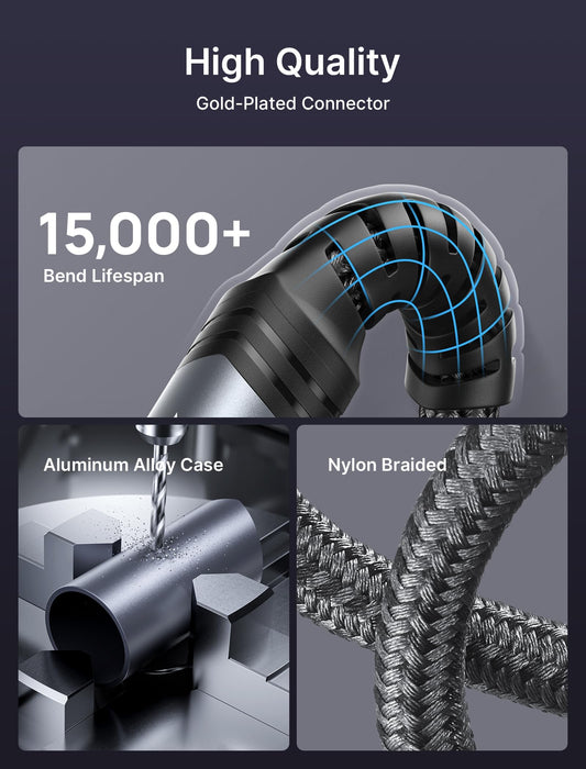 JSAUX Guitar Cable 10 ft, Amp Cord for Electric Guitar/Mandolin/Bass, Pro Audio Instrument Cable with 1/4" Tips(TS Port) Right Angle to Straight-Gray