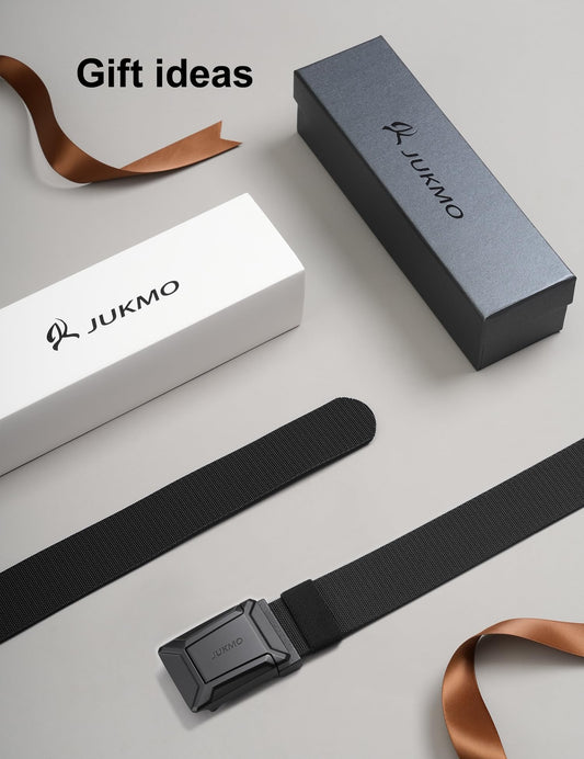 JUKMO Stretch Tactical Belt for Men, Military Work Rigger Hiking 1.5" Elastic Nylon Web Ratchet Quick Release Belt in Gift Box (Black, Medium)