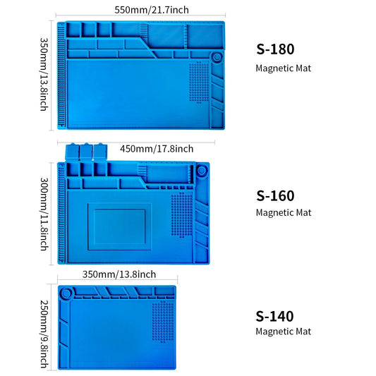 Kaisi S-180 Large Silicone Soldering Mat Magnetic Repair Work Mat, Heat Resistant Insulation Large Platform Station Pad for Soldering, Electronics, Computer Repair, Size 21.6 x 13.8 inch
