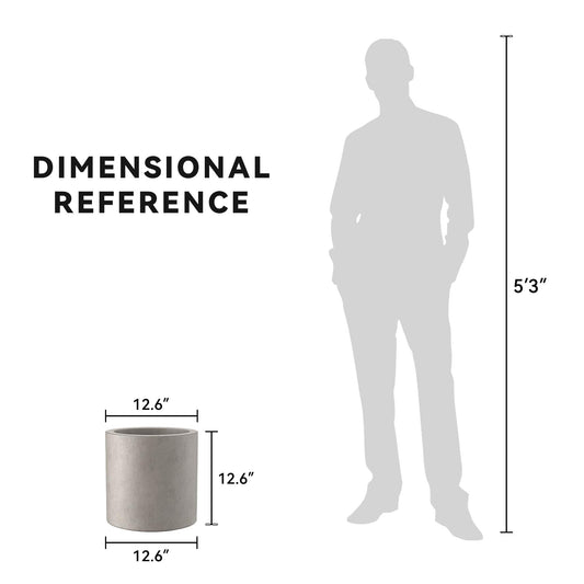 Kante 12.6" Dia Round Concrete Planter, Modern Style Large Cylindrical Plant Pot with Drainage Hole and Rubber Plug for Indoor Outdoor Patio, Weathered Concrete