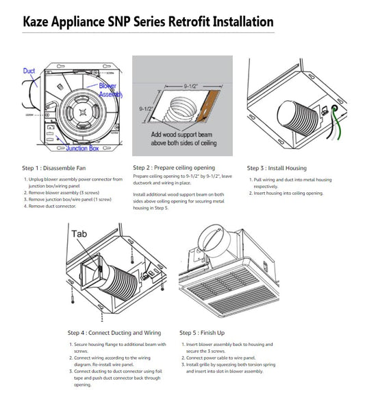 KAZE APPLIANCE SNP100 | 100 CFM | 0.8 Sone | No Attic Access Required Bathroom Ventilation Exhaust Extractor Fan