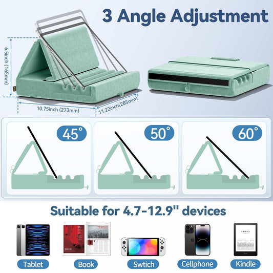 KDD Tablet Pillow Holder, Foldable iPad Stand for Lap, Bed and Desk -Tablet Soft Pad Dock with Pocket & Stylus Mount Compatible with iPad Pro 12.9, 10.5, 9.7 Air Mini 6 5 4 3, E-Reader
