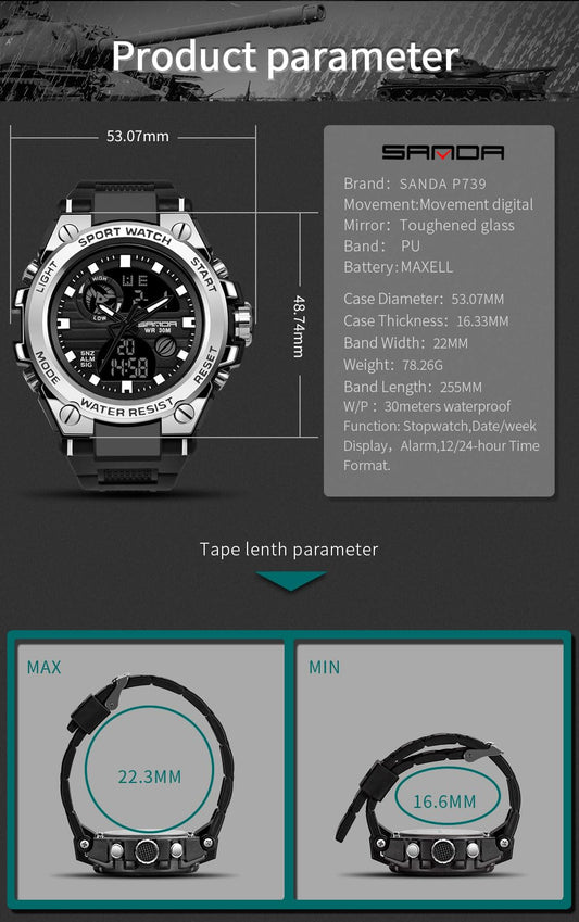 AIMES Men's Watches Tactical Outdoor Sports Waterproof Military Watch Analog Digital Date Multi Function Large Dual Display Mens Wristwatch