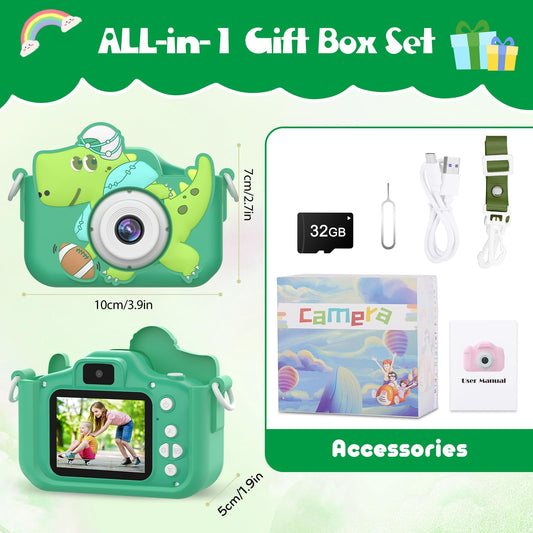 Kids Camera Toys for Kids, Digital Camera for Kids Age 3-8 Toddler Travel Dinosaur Toys, Christmas Birthday Gift for Boys Girls 3 4 5 6 7 8 Year Old, HD 1080P Video Camera, 32G SD Card(Green)