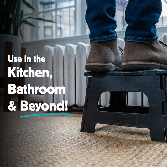 Kikkerland Rhino Foldable Step Stool – Holds Adults up to 300 Lbs, Best for Kitchen & Bathroom – Collapsible, Portable, Lightweight Stepping Stool with Sturdy, Non-Slip Design – Green, 8”
